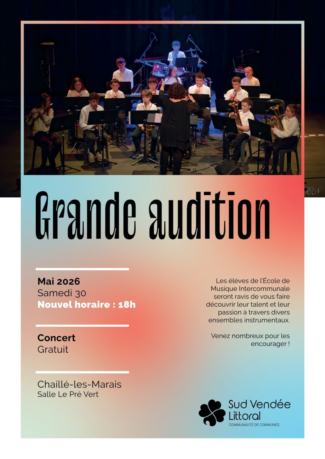 Les élèves de l'Ecole de Musique Intercommunale seront ravis de vous faire découvrir leur talent et leur passion à travers divers ensembles instrumentaux.