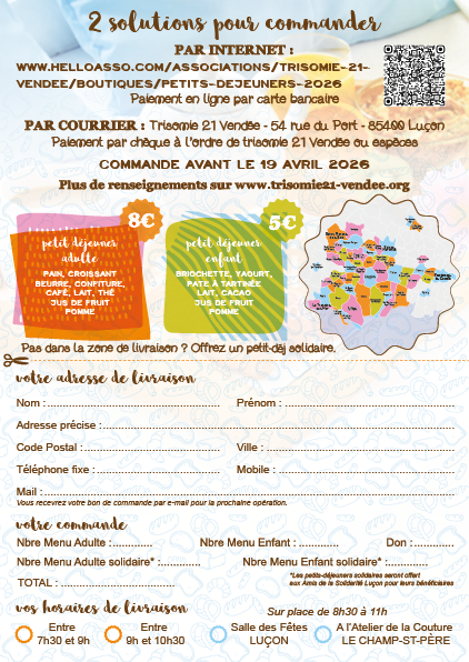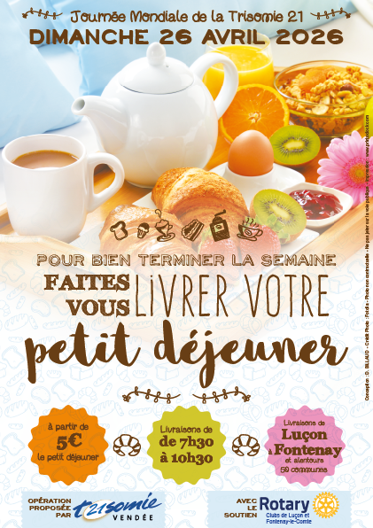Le dimanche 26 avril 2026, à l'occasion de la journée mondiale de la Trisomie 21, faites-vous plaisir avec un petit déjeuner livré à domicile.