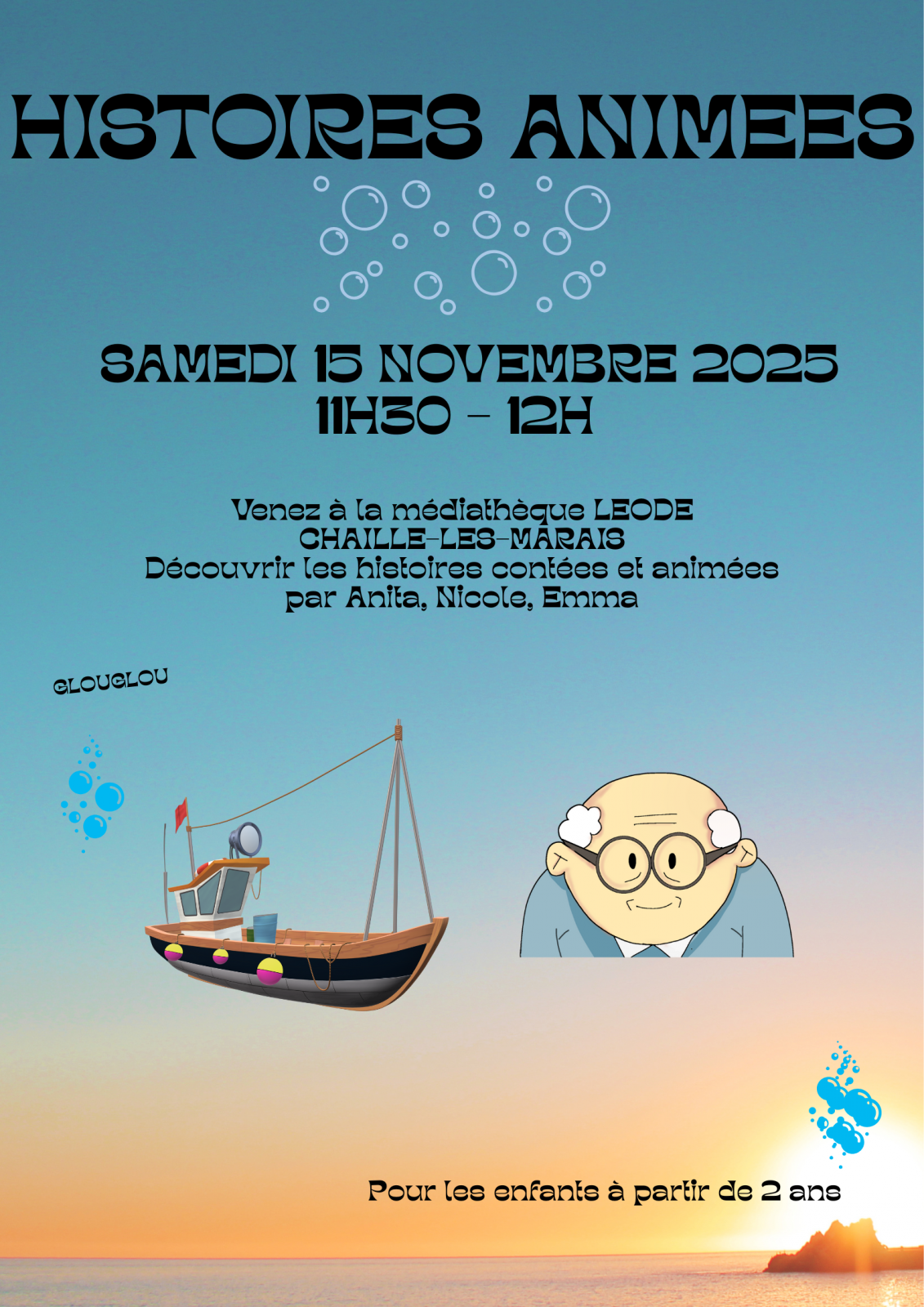 Venez assister aux Histoires animées de Anita et Emma, pour les enfants à partir de 2 ans.