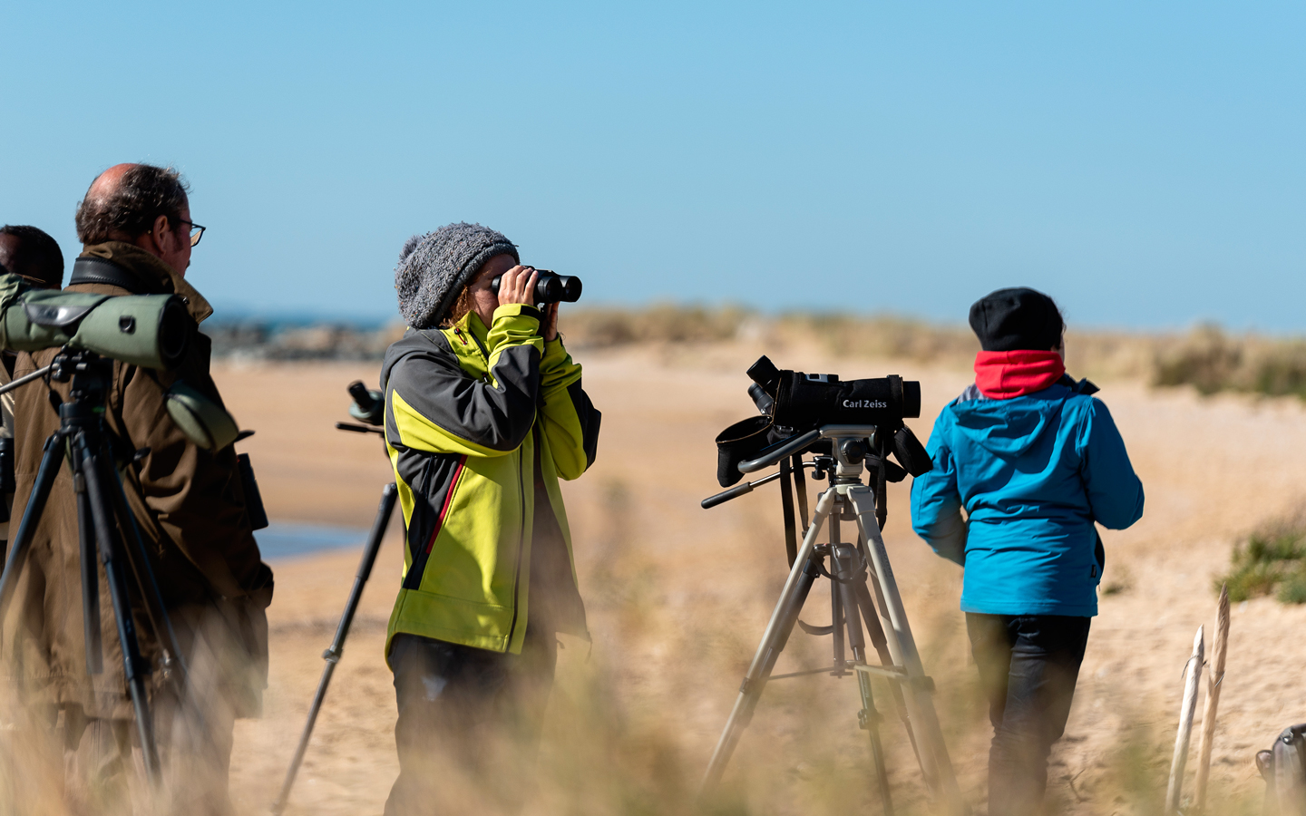 Observation des oiseaux migrateurs de passage à la Pointe de l'Aiguillon en compagnie des bénévoles de la Ligue de Protection des Oiseaux.