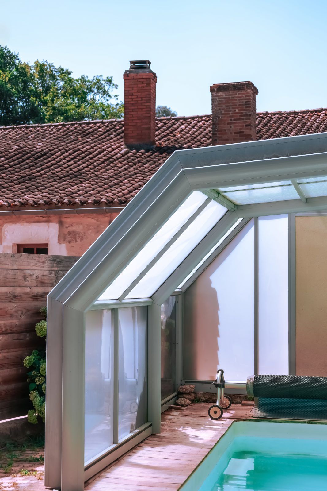 Vous avez accès à la piscine couverte d'un dôme de 1,20m de profondeur, chauffée ( sauf de novembre à mars, en supp), avec transat bain de soleil.