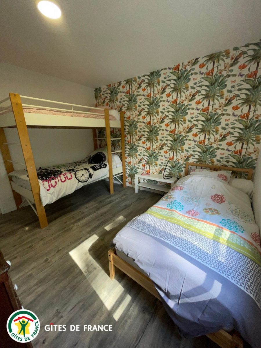 Maison rénovée sur un terrain de 3000m² avec piscine, située à 34 km de la côte vendéenne. Le gîte est composé au RDC d'un salon/séjour/cuisine, d'une chambre (1 lit 160) avec une salle d'eau ouverte privative, d'un WC séparé et espace buanderie (lave-linge et sèche-linge). A l'étage : une grande mezzanine avec un canapé convertible 140, 1 chambre avec 1 lit superposé (2 lits 90) et 1 lit 90, une chambre avec 2 lits 90 jumelables et une salle d'eau avec WC.
