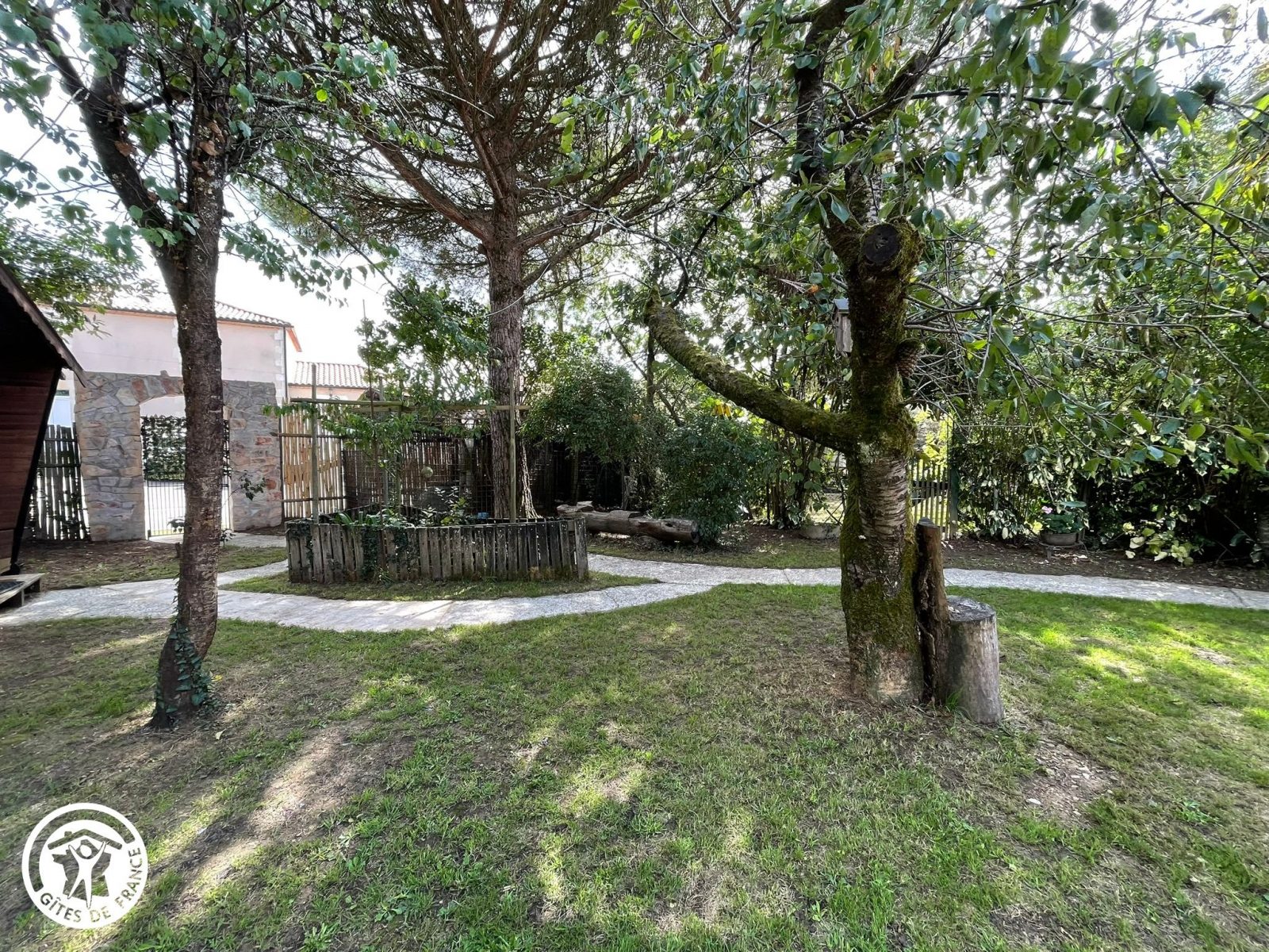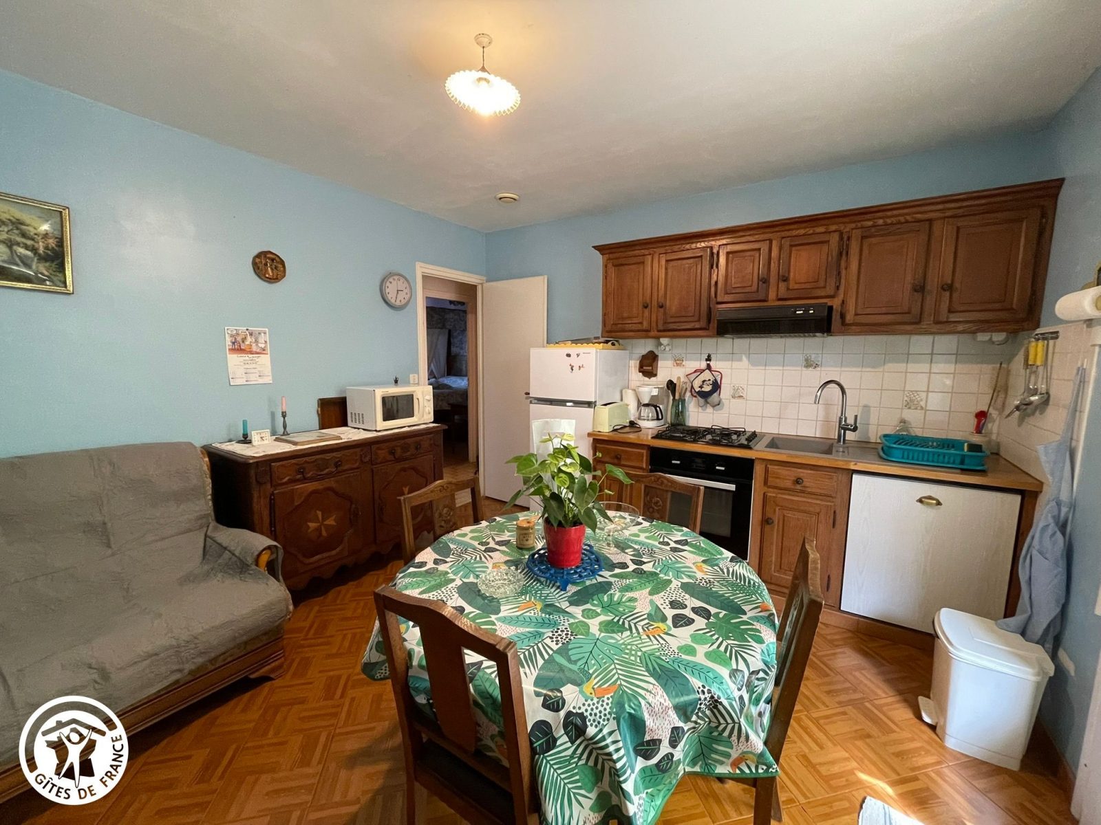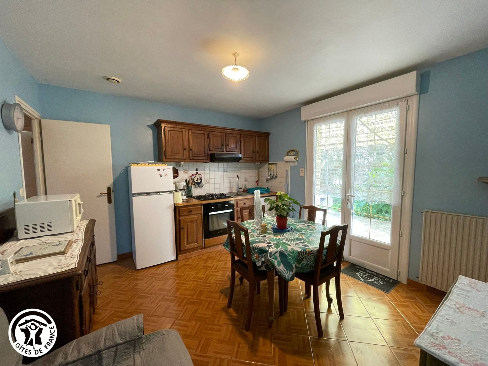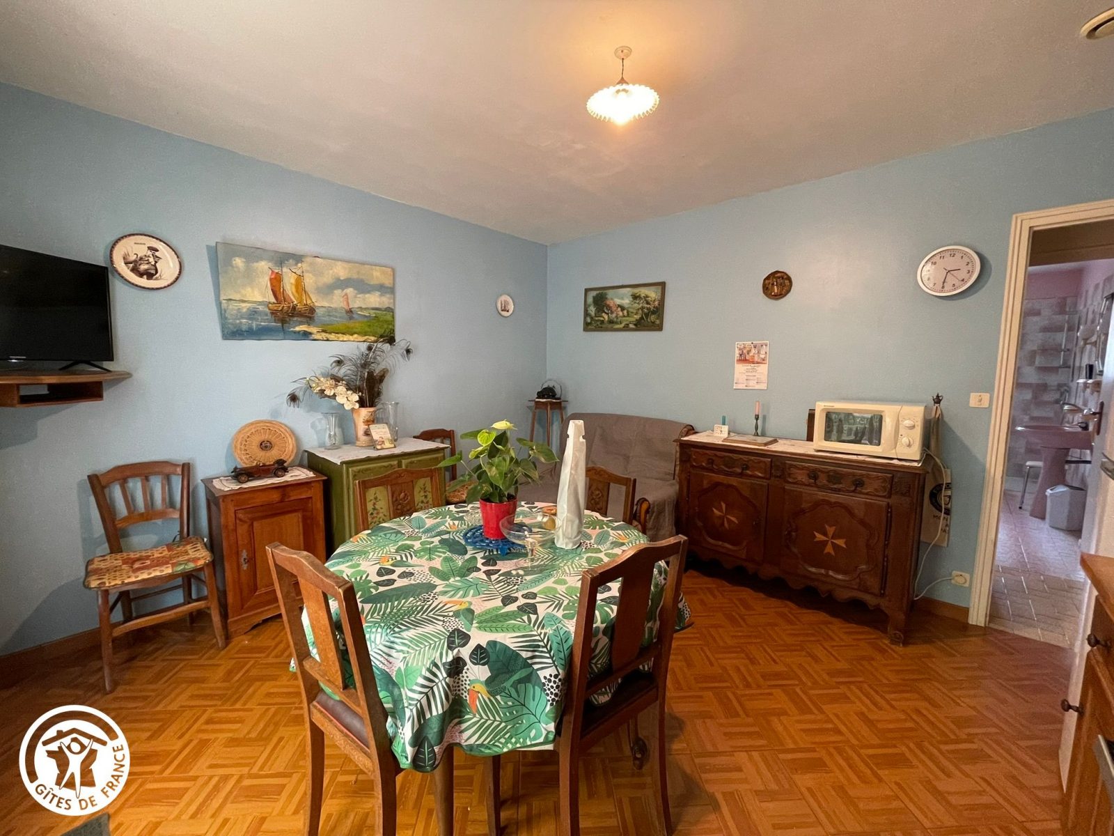 Gîte aménagé dans une maison des années 80, mitoyen au logement du propriétaire, situé dans un petit bourg. RDC: séjour/cuisine, 2 chambres (1 lit 140) (2 lits 90), salle de bains comprenant baignoire et douche, wc. Wifi. Terrain aménagé de 450 m² clos par du grillage. Terrasse (salon de jardin, barbecue, bains de soleil). Petite salle de jeux à disposition. Basse-cour (volailles d'ornement : coqs, paon) sur place. Distributeur à baguettes à 500 m.