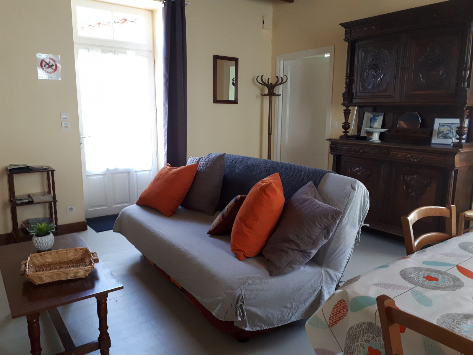 Gîte aménagé dans un ancien presbytère restauré, mitoyen à un autre gîte, situé dans un bourg. RDC: séjour/salon/coin-cuisine, wc. Etage : salle d'eau/wc, 2 chambres (1 lit 140) (1 lit 140, 1 lit 90). Chaise bébé sur demande. Wifi. Grand espace vert commun, partie privative close de 200 m², terrasse (salon de jardin, barbecue). Aménagement en terrasse avec vue sur la vallée du Lay. Gîte communal.