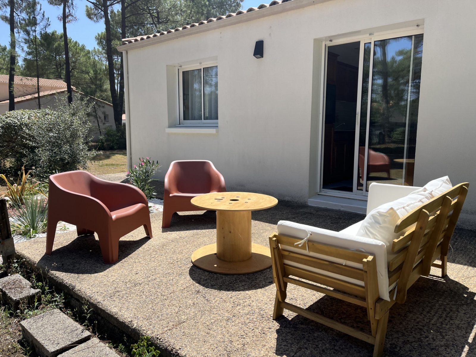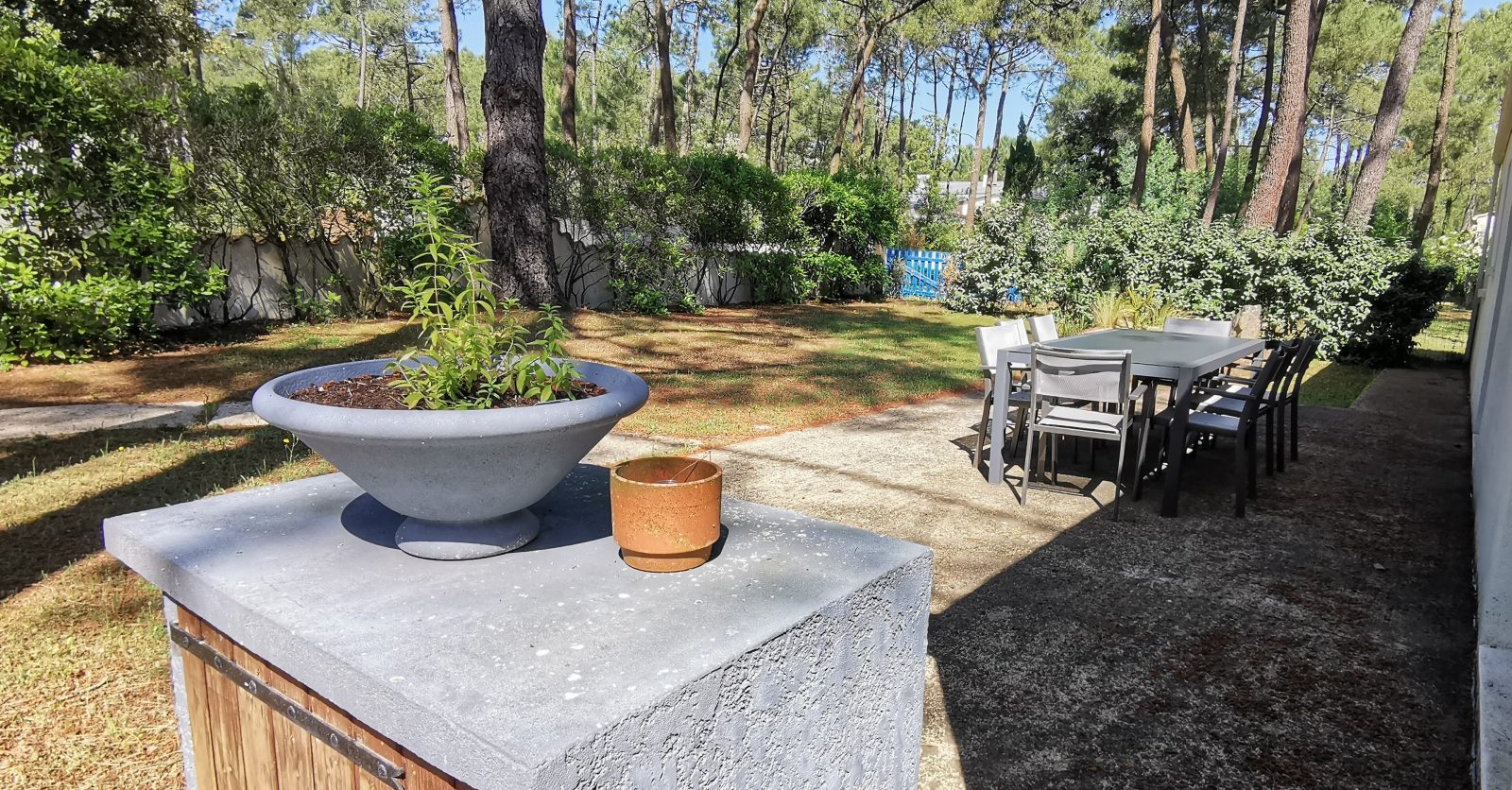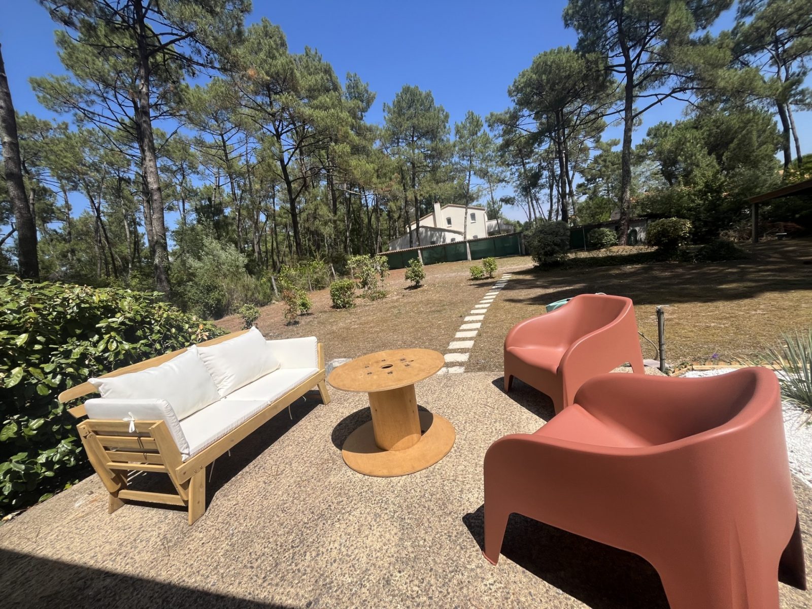 Côté extérieur, profitez d'un grand parc arboré de pins , de deux terrasses dont une ombragée. Cour fermée. Stationnement privatif.