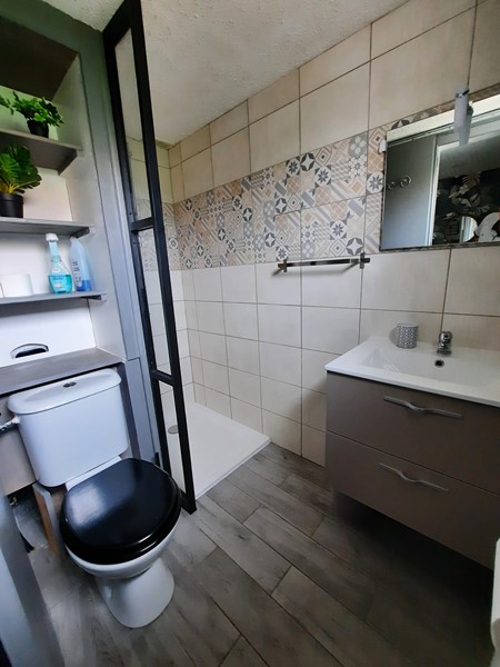 Salle d'eau avec douche, lavabo et WC