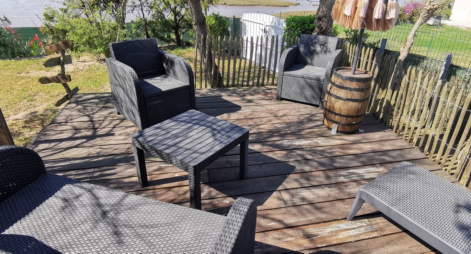 Maison située chemin du Fort à l'Aiguillon sur Mer, pour 4 personnes avec vue sur le Lay, au calme. Celle-ci se compose d'une grande pièce de vie avec un accès terrasse, coin cuisine équipé (four, plaque gaz, micro-onde, lave-vaisselle, grille-pain, bouilloire...) ; 2 chambres avec chacune un lit de 140 une armoire et TV écran plat et d'une salle de douche avec WC. Arrière cuisine avec un congélateur et un évier. Le jardin est joliment aménagé avec une terrasse surplombant la vue sur le Lay. Également à votre disposition, l'accès WIFI ainsi que la climatisation réversible. Les animaux sont admis dans le logement sans supplément.