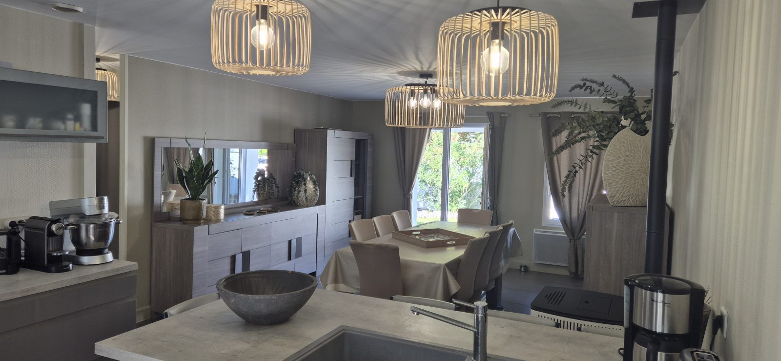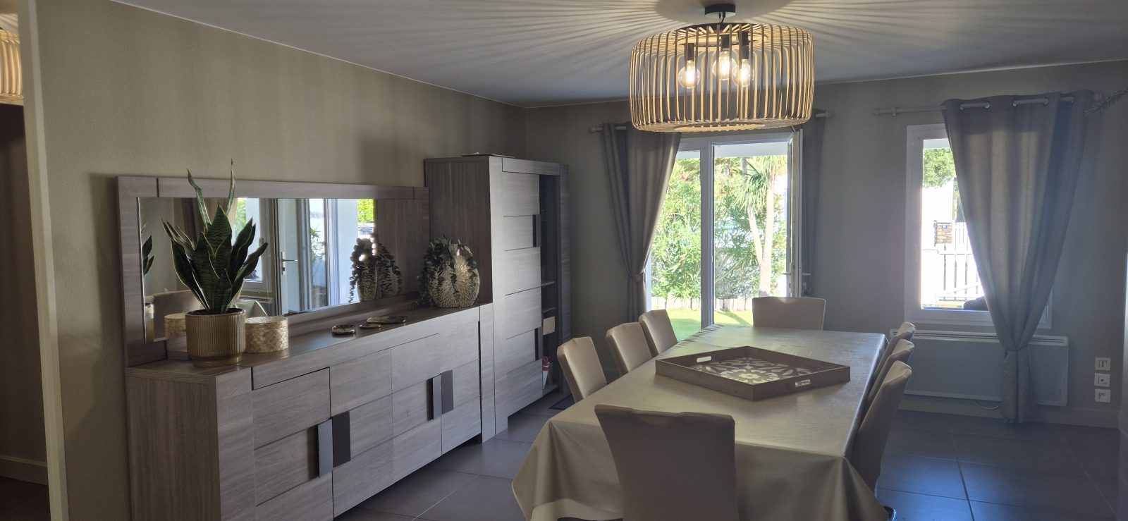 Très jolie villa à proximité des plages et des commerces de LA FAUTE SUR MER. Elle se compose au rez de chaussée d'un bel espace de vie avec séjour ouvert sur une cuisine moderne entièrement équipée, d'un salon avec TV écran plat et canapé convertible en 160, deux chambres avec lits de180 et de 160, une salle d'eau avec douche à l'italienne et WC séparés. À l'étage (accès par escalier escamotable pentu ne convenant pas à des jeunes enfants) une chambre sous pente avec 2 lits superposés de 90 et un cabinet de toilette avec lavabo et WC. La maison est équipée de la WIFI.