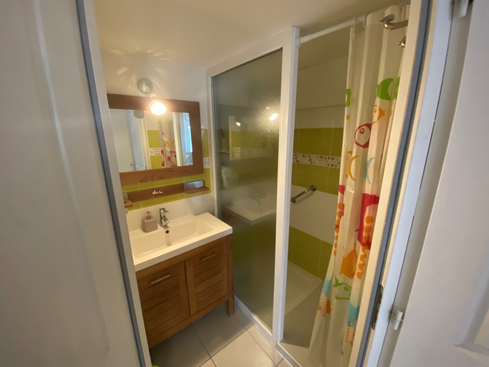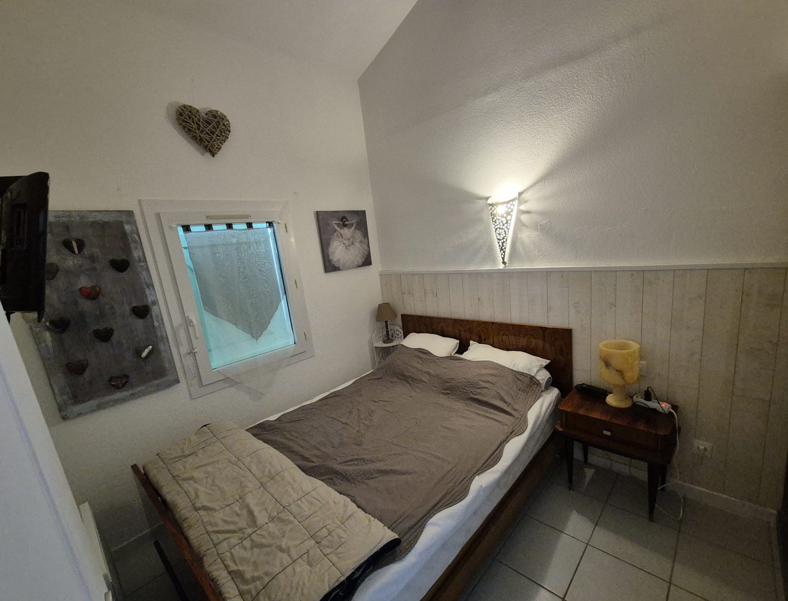 Dans résidence avec piscine collective, cette agréable maisonnette de 37M2 est composée d'une pièce de vie avec cuisine aménagée et équipée d'un four, un micro onde, un réfrigérateur avec case congélateur, une cafetière, un lave linge et des plaques à induction , d'une chambre avec un lit double de 140, à l'étage, en mezzanine, on trouve deux lits simples de 90 ainsi qu'un clic clac de 130. La location bénéficie d'une salle d'eau avec WC séparés. Coté extérieur, vous profiterez d'un jardin clos avec barbecue en dur, d'une douche extérieure et d'une terrasse équipée. Vous bénéficierez également d'une place de parking privative.