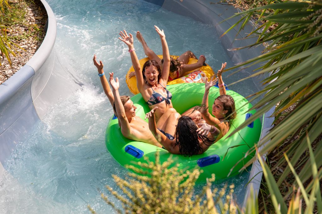 Des espaces pour petits et grands, amateurs de sensations fortes ou à la recherche d’un moment de détente : 16 toboggans, un lagon avec cascade, une piscine à vagues, 400 mètres de rivières sauvages, des espaces privatisées avec jacuzzi, ...Tout cela les pieds dans le sable blanc et entouré d’une végétation luxuriante.