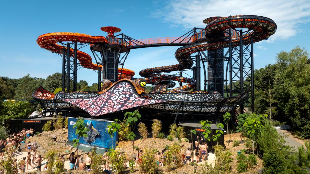 En 2026, faites le plein de glisse dans le STINGRAY - élu meilleure attraction au Monde ! Avec ses 4 toboggans perchés à 26 mètres de haut et son design immersif, vivez une expérience de glisse unique à travers le monde.
