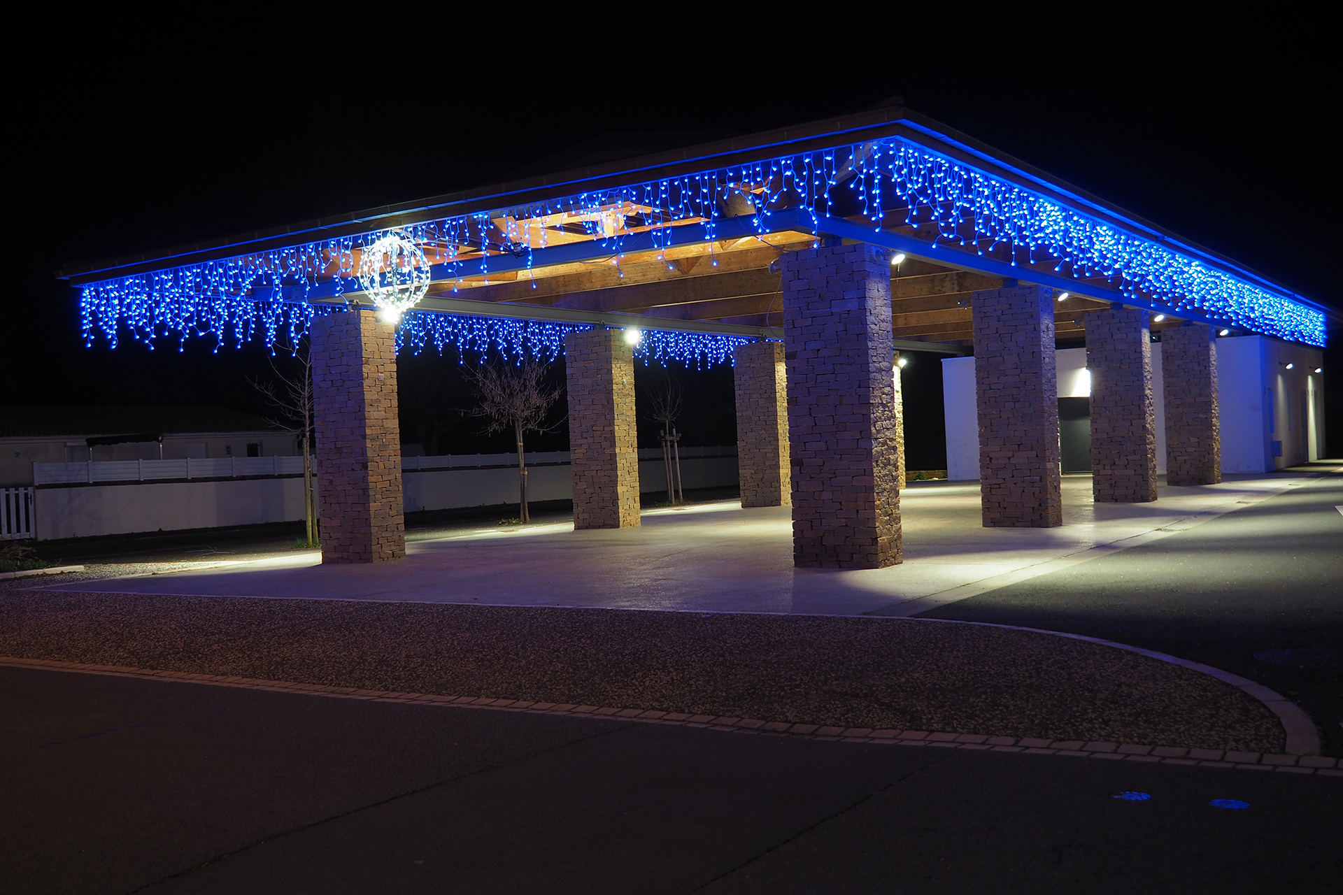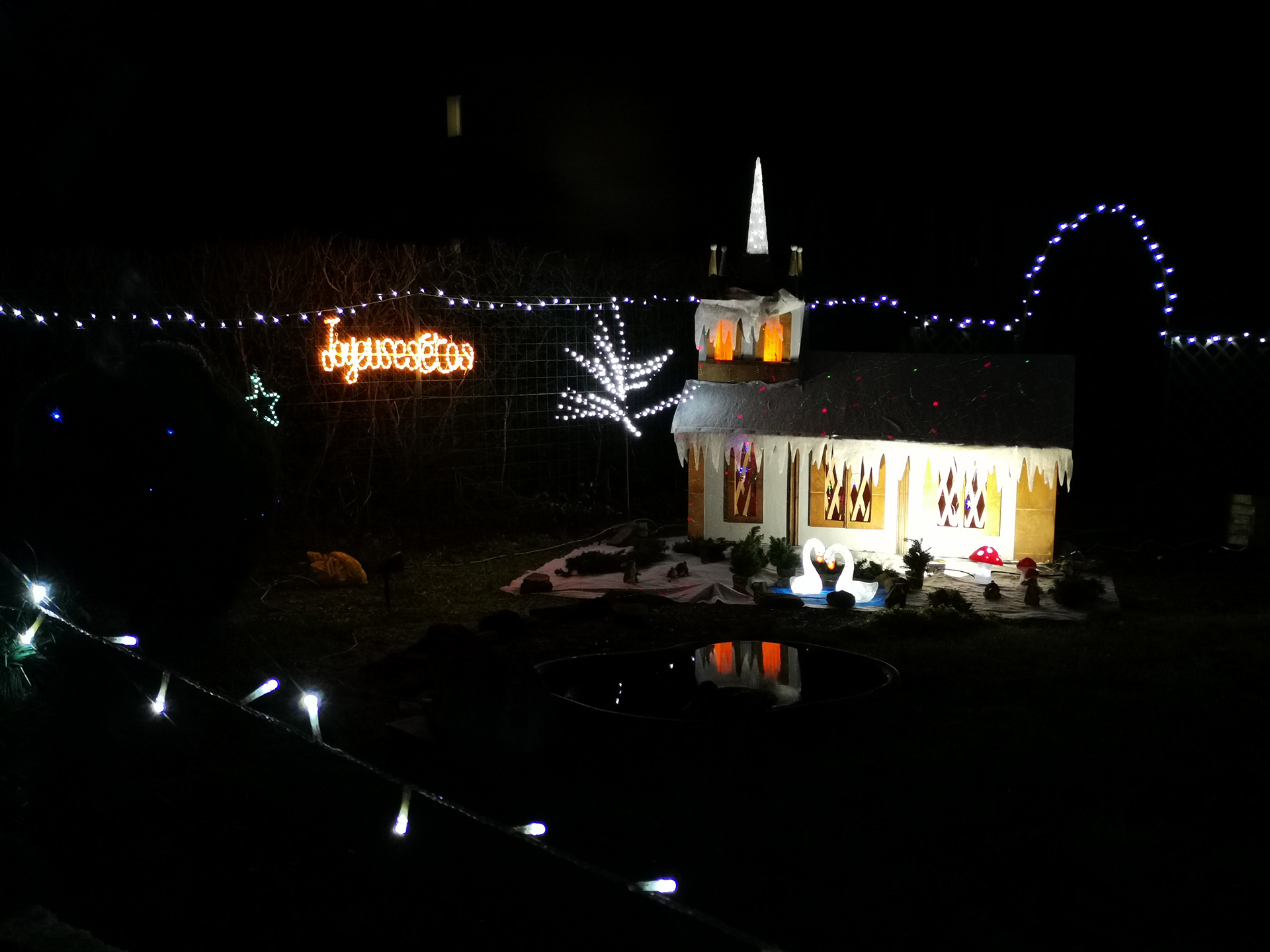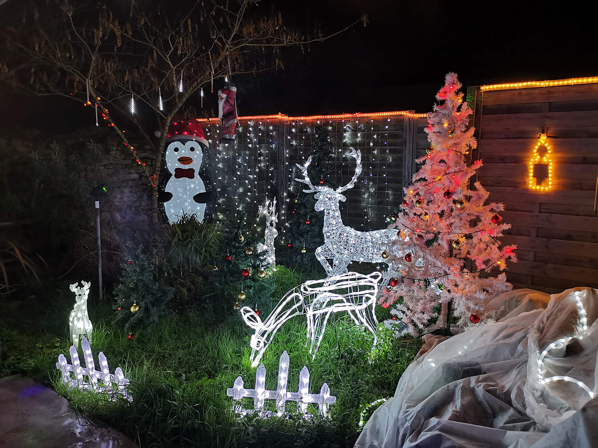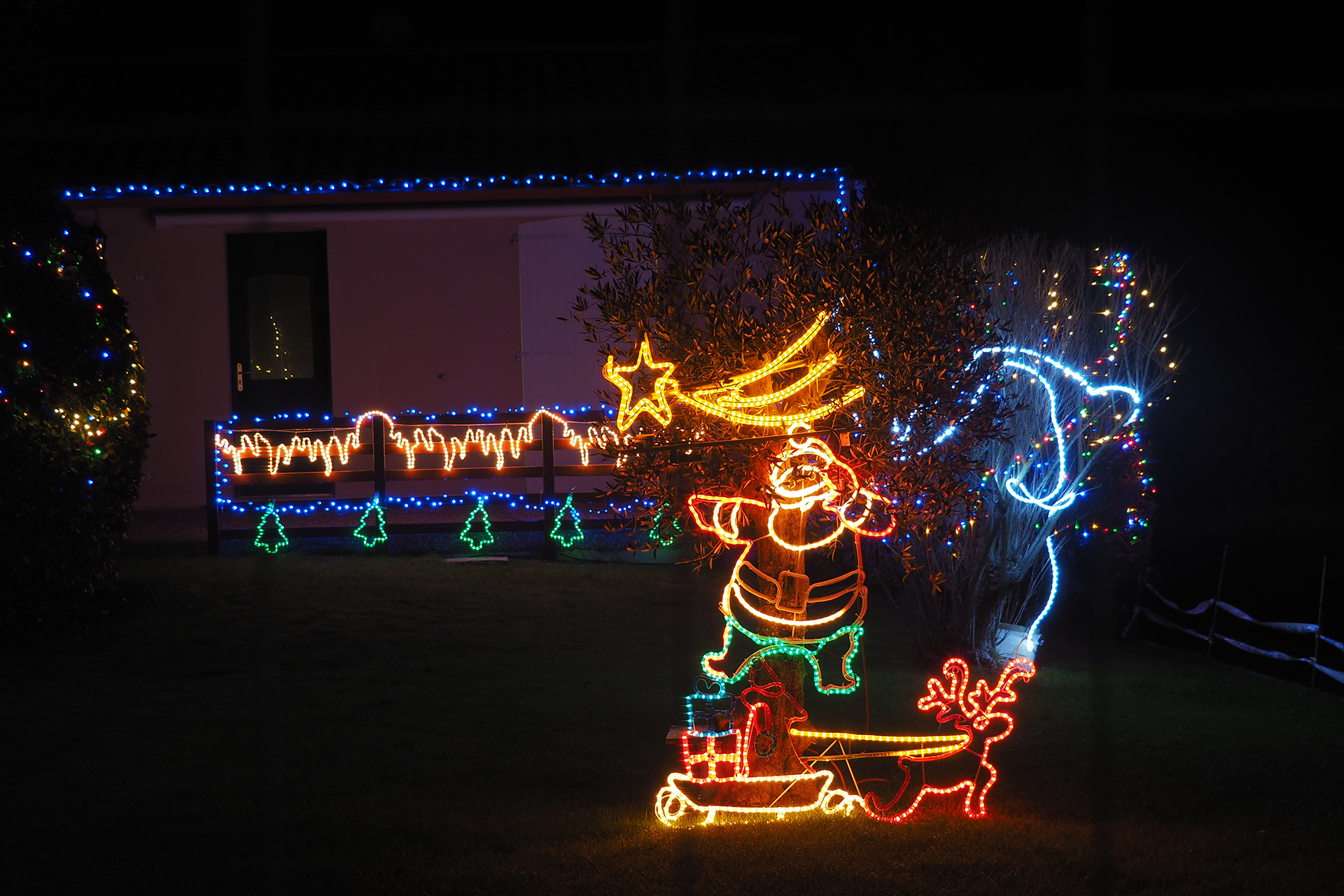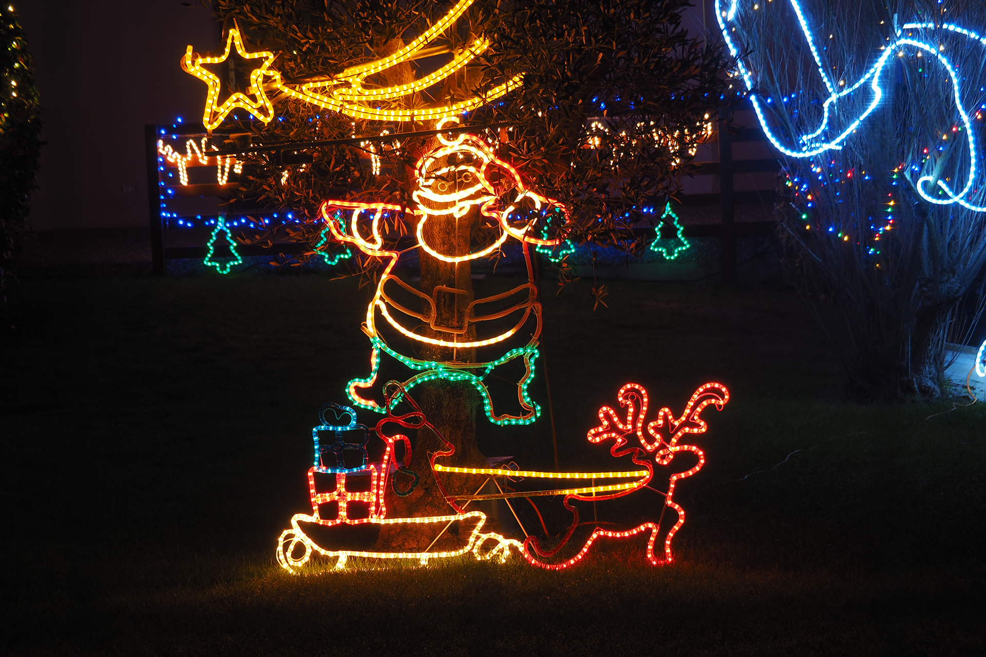 Parfois, des rues entières ou des lotissements entiers jouent le jeu et les façades des maisons se parent de guirlandes multicolores ou de projections animées. Cela apporte un rayon de soleil dans la nuit.
