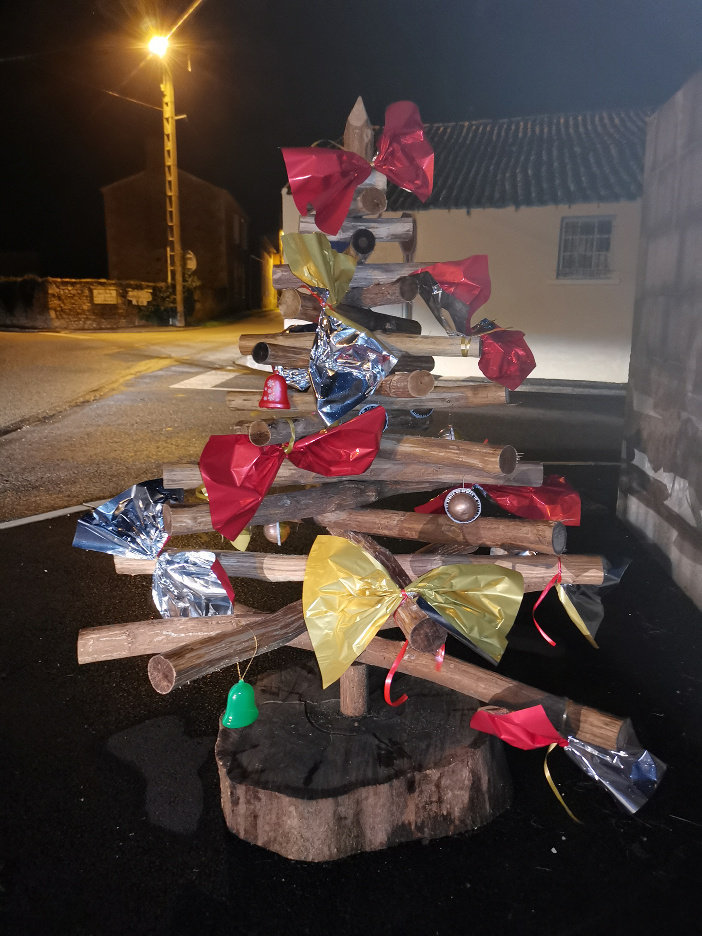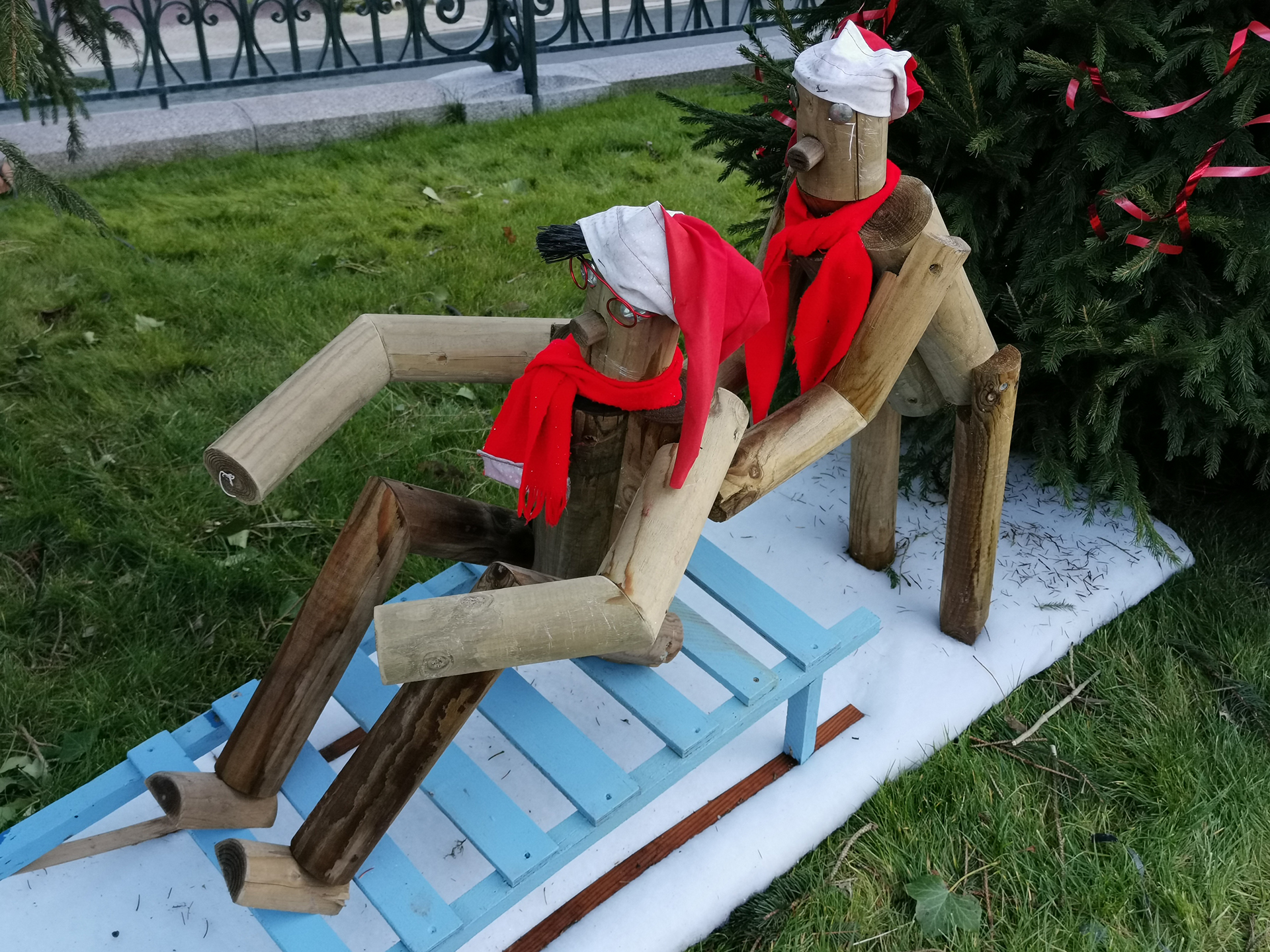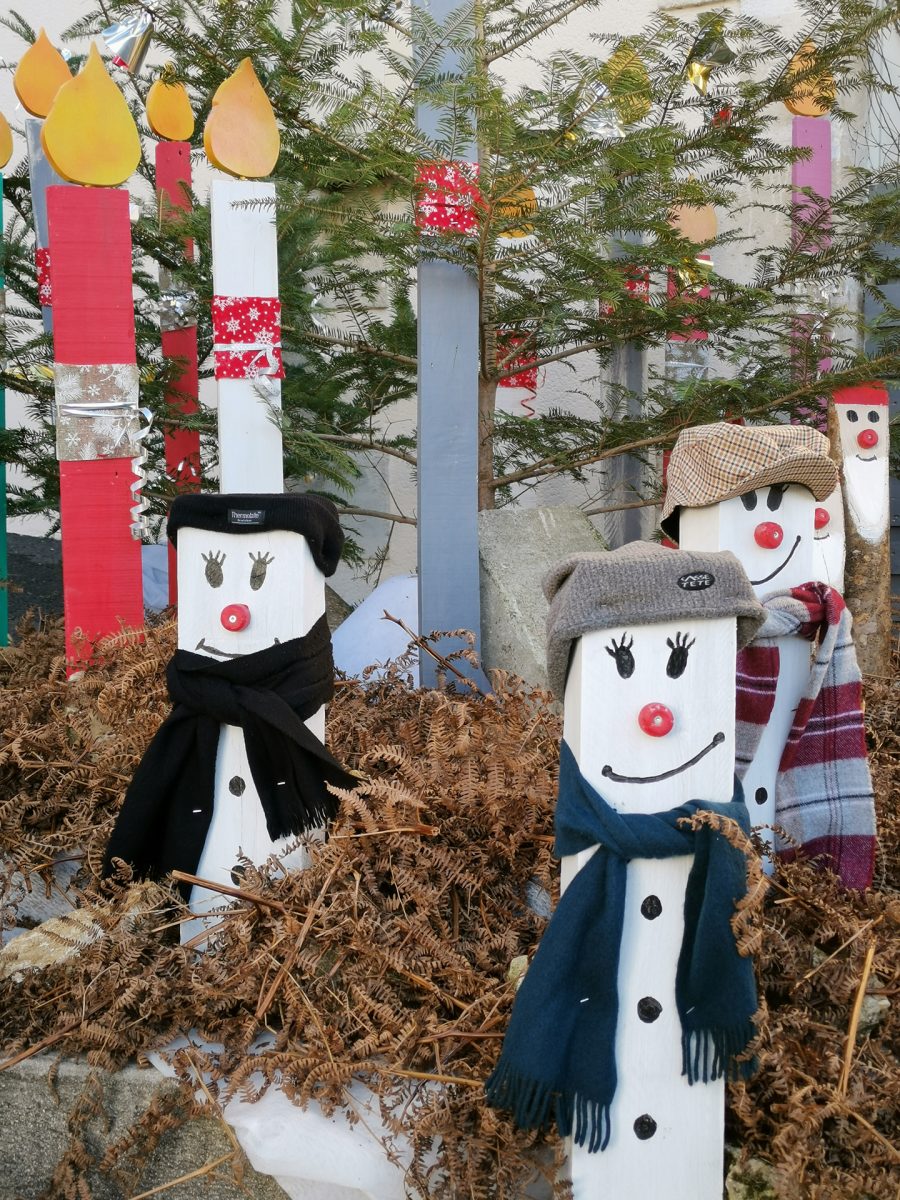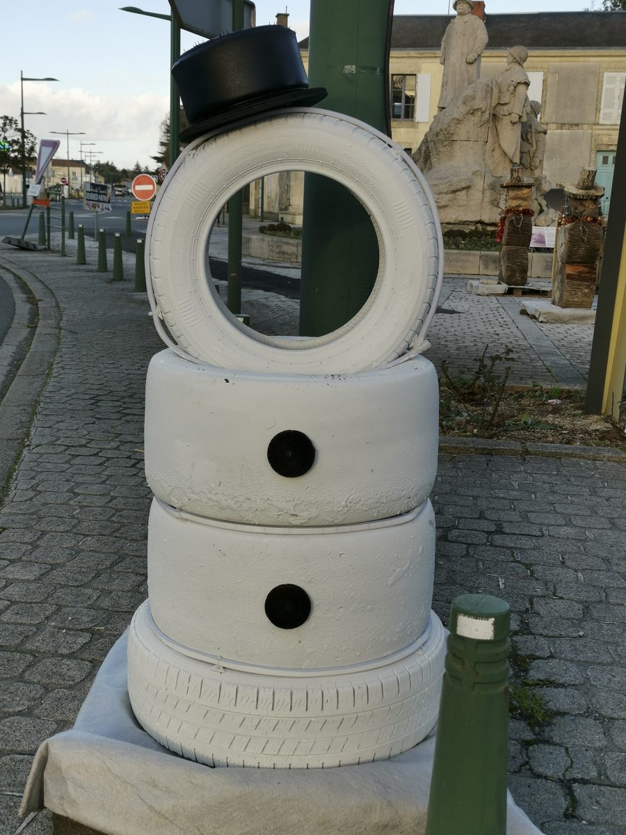 Le bois reste un matériau de prédilection pour faire des décos. Les sapins en bois, souvent en vieilles palettes, les bonhommes de neige en buche, les rennes en rondins, sont autant d’exemples que l’on peut faire de belles choses tout en réutilisant des matériaux. D’autres objets recyclés et parfois détournés les accompagnent, bonhomme de neige en pneus, en roues de vélos. Les communes et leurs services techniques laissent libres cours à leur imagination pour un résultat souvent remarquable. Chapeau !