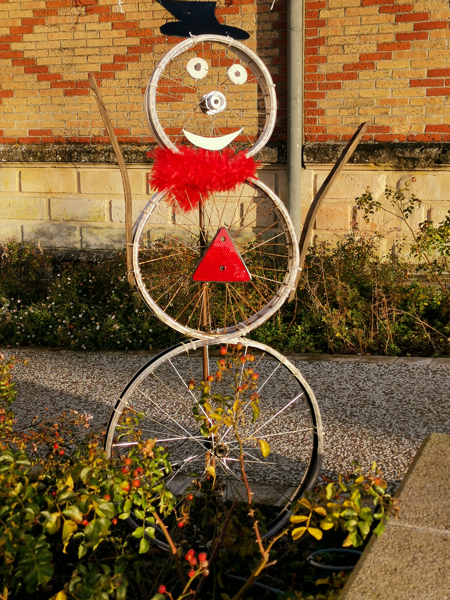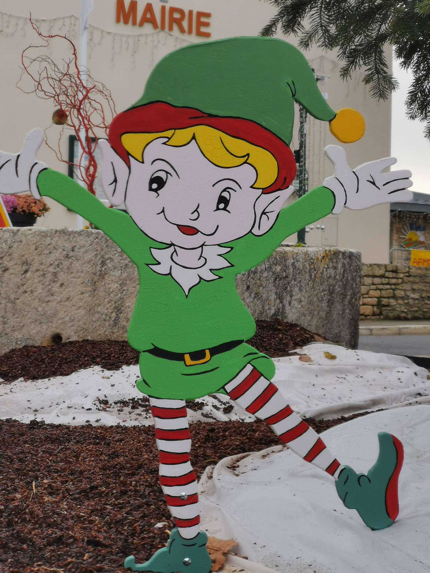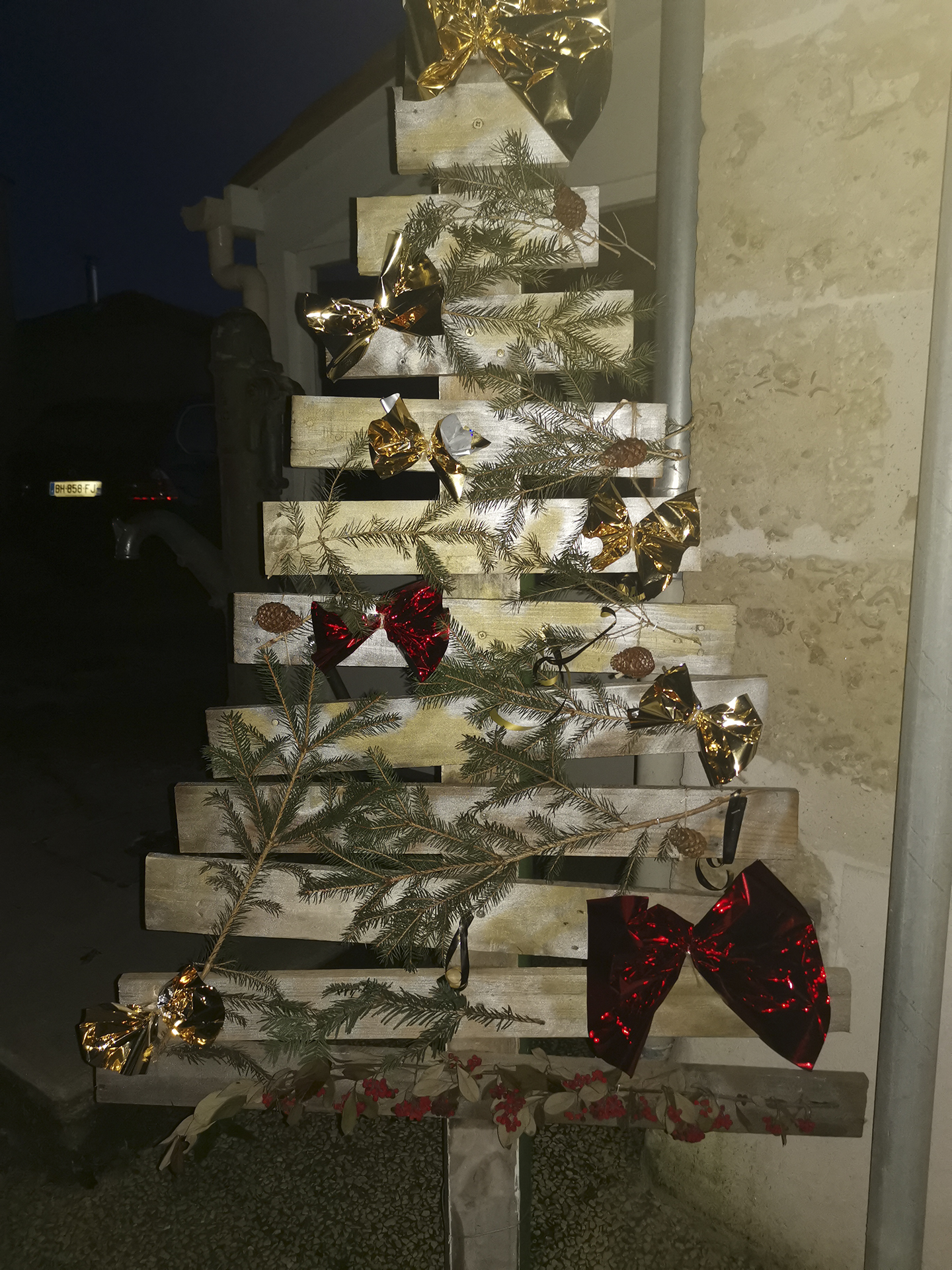 Le bois reste un matériau de prédilection pour faire des décos. Les sapins en bois, souvent en vieilles palettes, les bonhommes de neige en buche, les rennes en rondins, sont autant d’exemples que l’on peut faire de belles choses tout en réutilisant des matériaux. D’autres objets recyclés et parfois détournés les accompagnent, bonhomme de neige en pneus, en roues de vélos. Les communes et leurs services techniques laissent libres cours à leur imagination pour un résultat souvent remarquable. Chapeau !