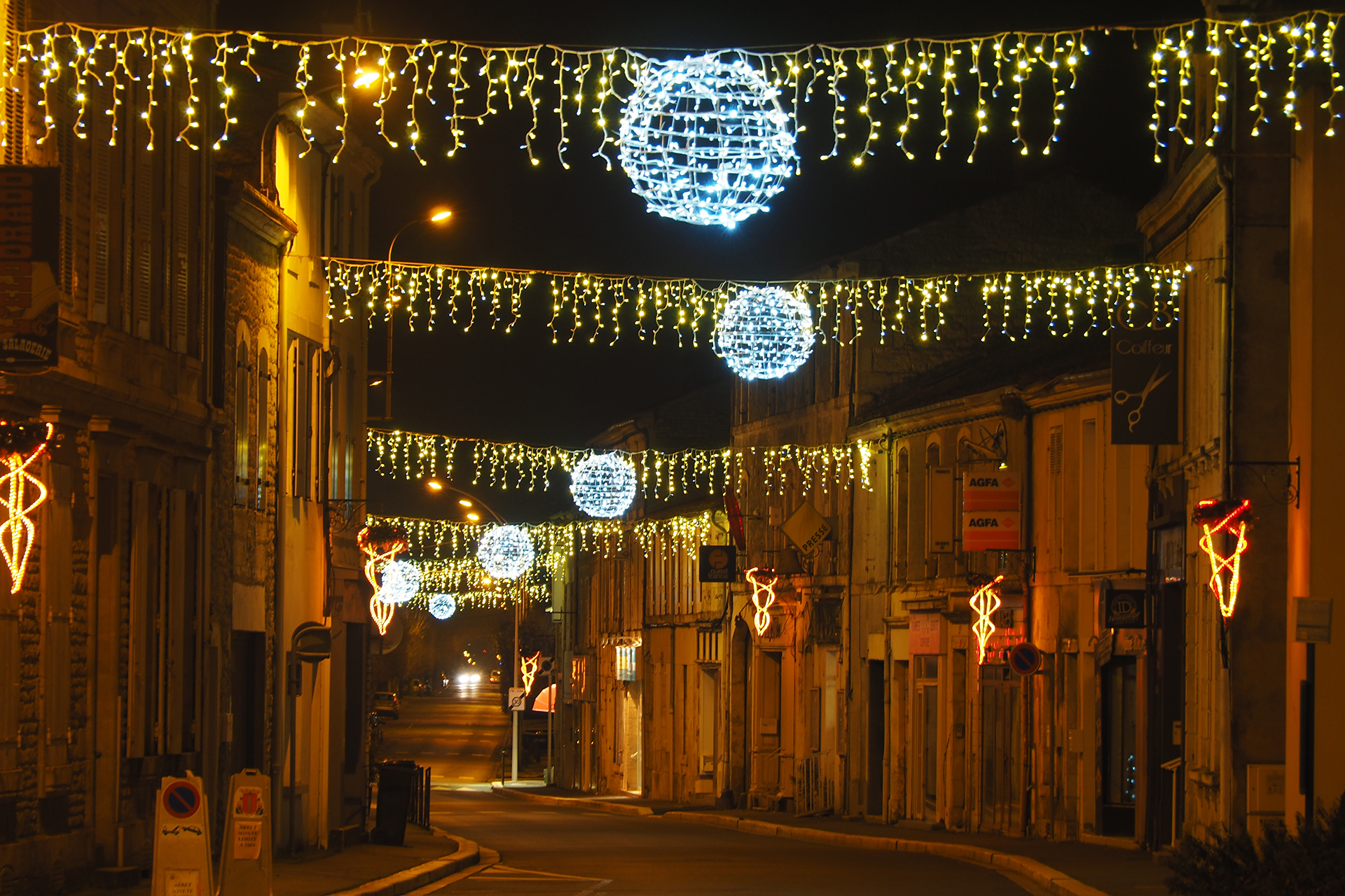 Le soir, lorsque la nuit tombe, c’est un tout autre spectacle qui s’offre à nous. Place aux éclairages, aux illuminations, aux paillettes, aux étoiles et aux scintillements. Il n’y a pas de petites ou de grandes décorations de Noël, elles ont toutes le même but, rendre nos fêtes de fin d’année magiques. L’apparition d’un point de couleur au détour d’un lampadaire nous projette instinctivement dans notre enfance où les souvenirs se mêlent, s’emmêlent et se démêlent.
