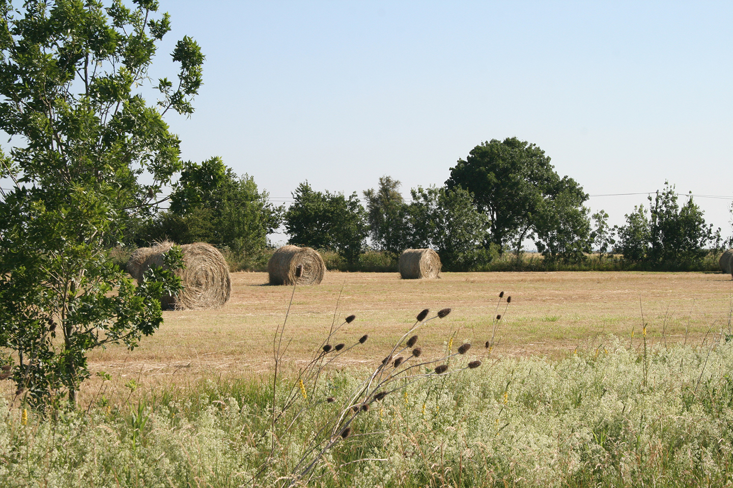 Et oui, il n’y a pas que la Venise Verte dans la vie ! Les deux tiers du Marais poitevin sont constitués de marais desséchés, des zones protégées des inondations grâce à des digues, et où il y a très peu d’arbres. Ces vastes étendues planes sont dédiées à l’agriculture depuis des siècles !