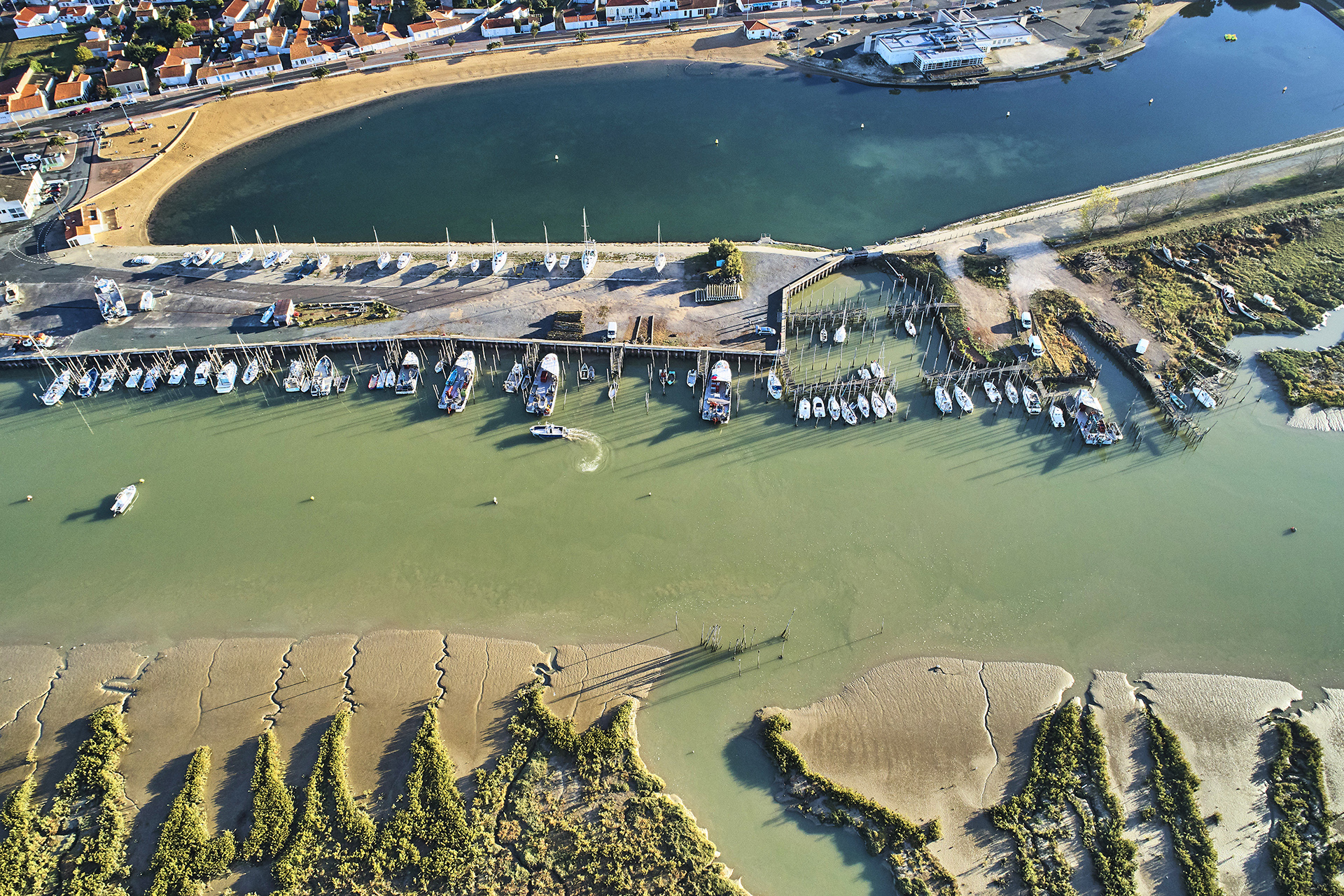 Ensuite, pour accéder aux plages de sable, situées dans la commune voisine, de l’autre côté du Lay, il fallait faire appel à un passeur pour traverser. Puis la barque a été doublée par un bac. Il faut attendre 1900, pour que le Conseil Général étudie la construction d’un pont. En 1910, l’actuel petit pont piéton ouvre. Il sera d’ailleurs amené à être remplacé dans les années à venir. Le grand pont pour les voitures, quant à lui, date des années 1960.