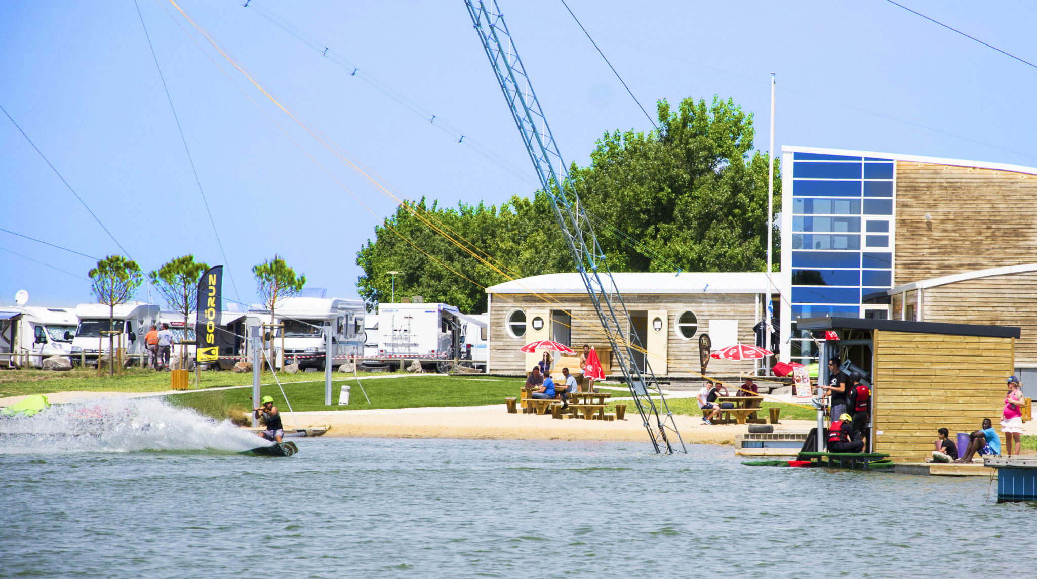 Votre truc, c’est plutôt les sensations fortes, voire très fortes ? Alors rendez-vous à Atlantic Wake Park ! Wakeboard, kneeboard, e-foil, wingfoil, wakefoil, ski nautique ou encore wakeskate… fun et glisse garantis ! Cerise sur le cake, pour pratiquer ces sports, pas besoin d’un ami équipé d’un bateau à moteur et d’un câble. Tractés par les téléskis nautiques (un peu comme le tire-fesse au ski), vous pouvez désormais vous initier, vous entraîner et exécuter des figures de style dans un endroit spécialement conçu. Une planche aux pieds et vous donc voilà prêts pour appréhender les modules, rampes et obstacles.