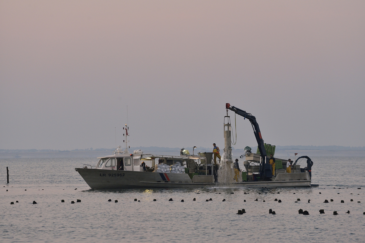 C’est ici, dans la Baie de l’Aiguillon, qu’on élève, depuis le 13ᵉ siècles, les moules sur bouchots. Ces pieux en bois de chêne plantés au cœur de l’estran les protègent du sable ! Ainsi, au gré des marées, les pieux se couvrent et se découvrent d’eau de mer, donnant aux moules qui s’y développent leur goût si exquis. Aujourd’hui, sur ce même terroir ancestral, les mytiliculteurs expérimentent, avec le même succès, la nouvelle technique d’élevage des moules sur filières en pleine mer. Enfin, les moules se dégustent bien charnues de mai à octobre.
