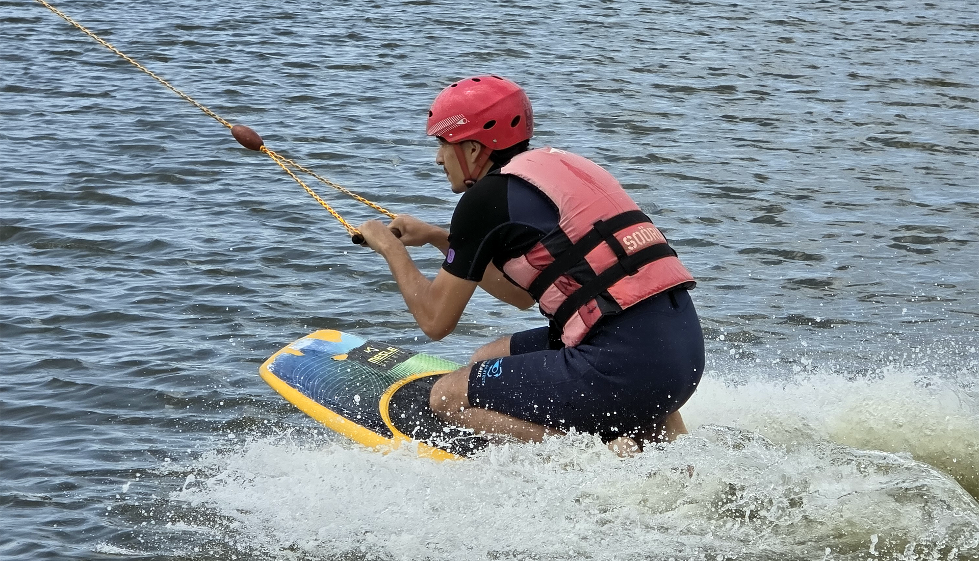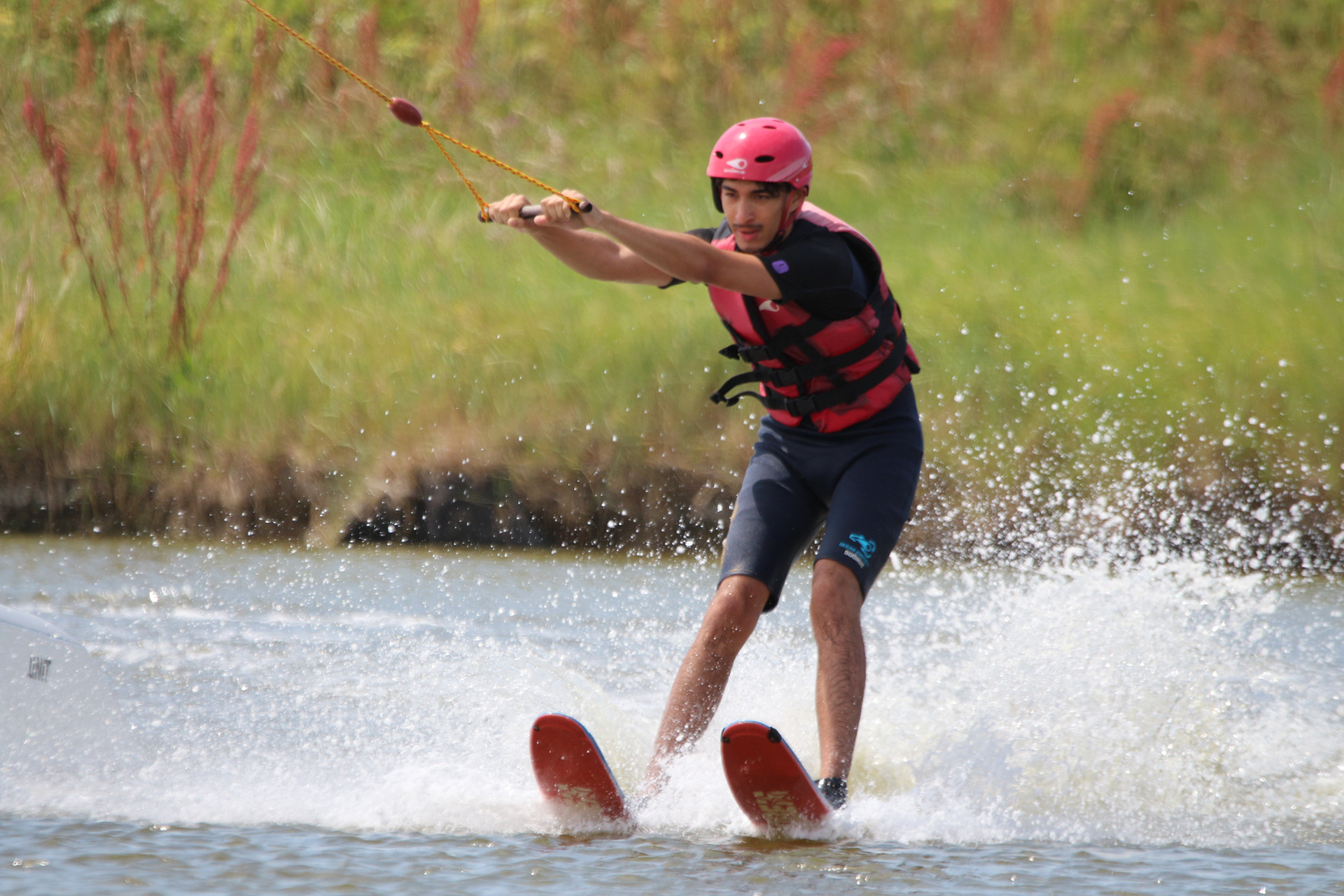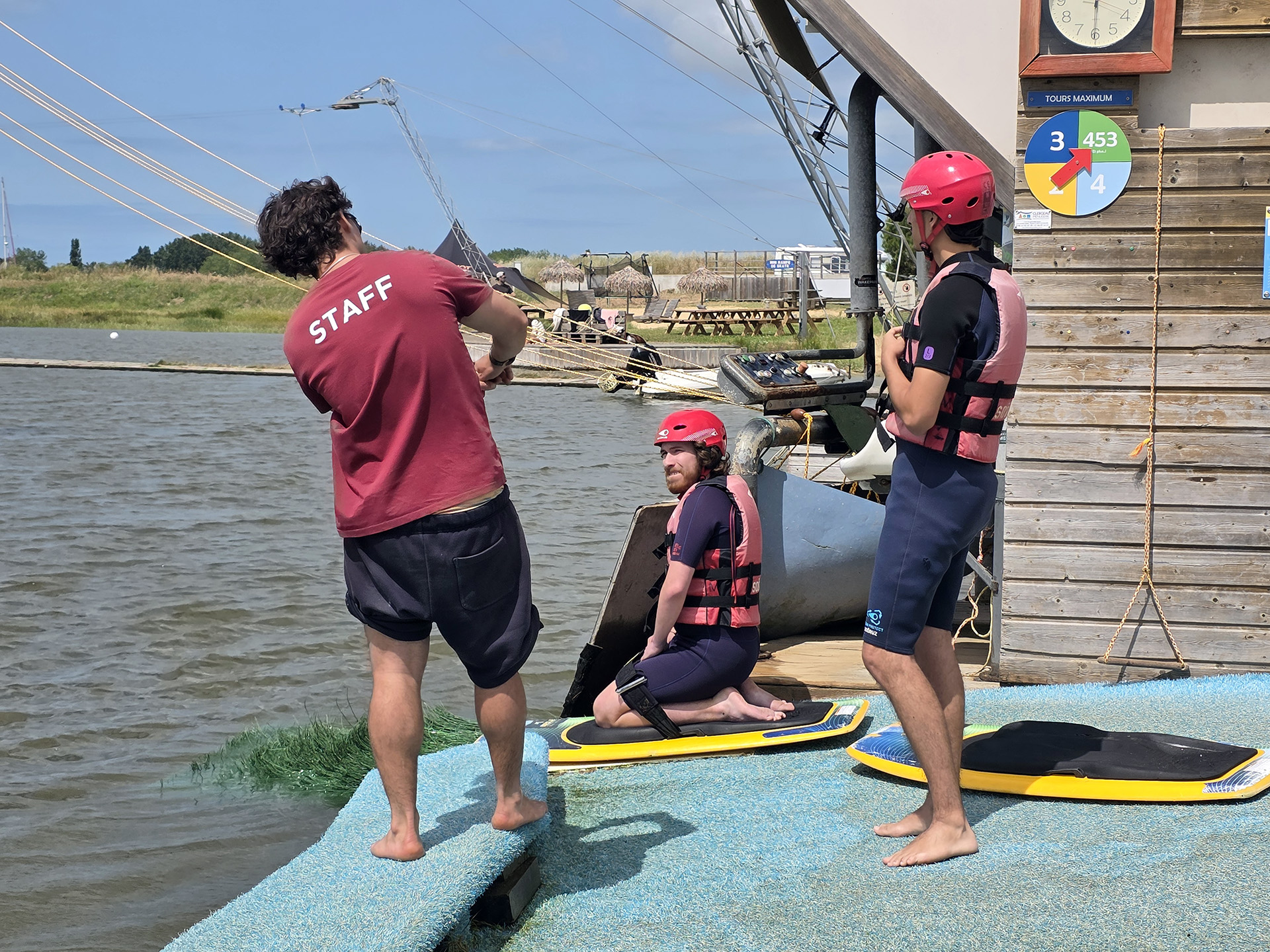 J’ai commencé par la planche à genoux. C’est l’idéal pour se familiariser avec la glisse sans trop de difficulté. Même si j’ai fini dans l’eau plusieurs fois, ça faisait partie de l’expérience, et c’était même plutôt drôle. Puis j’ai tenté le téléski nautique, où je n’ai malheureusement pas réussi à me lever. Mais au lieu de me décourager, je suis simplement revenue à la planche à genoux, et j’ai continué à profiter de la séance. Ce que j’ai adoré, c’est que même sans être une pro, on s’amuse dès le départ, et surtout, on progresse vite, à son rythme, sans pression. Les garçons ont aussi tenté l’expérience du wakeboard, mais c’est Lény qui s’en est le mieux sorti, réussissant à faire plusieurs tours sans tomber, sous les encouragements de toute l’équipe.