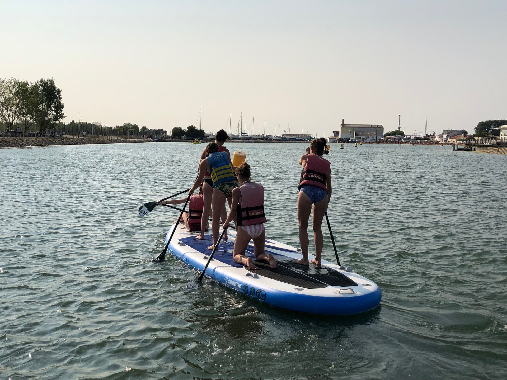 Si vous venez en couple ou même seul(e), il y a aussi des options comme le paddle, parfait pour une balade calme, à son rythme. On peut se détendre, se poser au milieu de l’eau, ou simplement glisser doucement le long des berges. C’est une activité zen, facile à prendre en main, idéale pour se reconnecter à soi-même ou partager un moment à deux. Et pour ceux qui viennent à plusieurs, il y a même un Big Sup XXL, une planche géante qui permet de faire du paddle en groupe, pour encore plus de rires et de bons moments partagés.