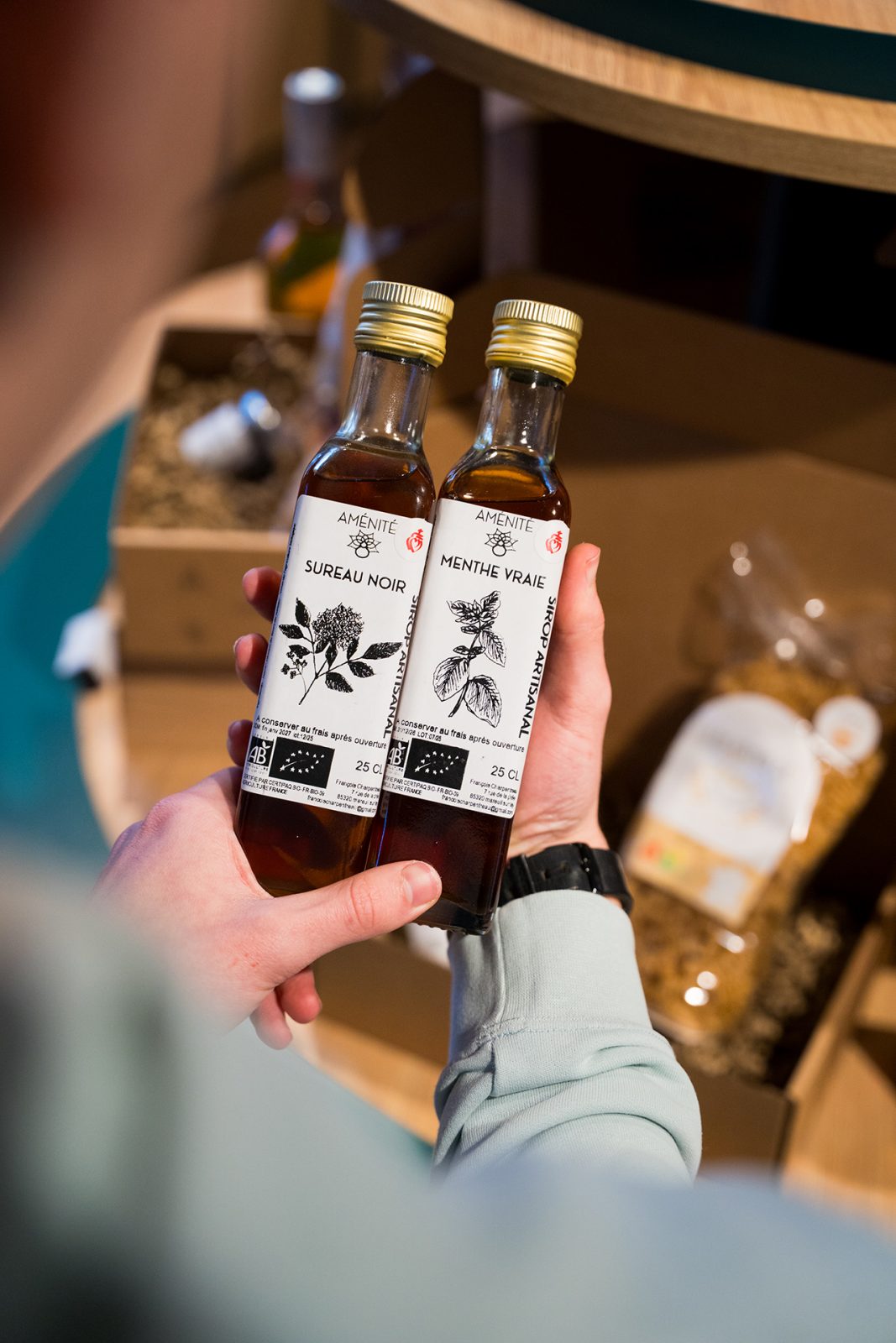La boutique met à l’honneur les produits du terroir et les savoir-faire locaux. Elle rassemble une belle sélection de spécialités gourmandes et de créations artisanales issues de Vendée du Sud et de Vendée. Miels du Marais poitevin, tisanes et plantes aromatiques, sirop, pâtes artisanales fabriquées à partir de blé cultivé localement, soupes de légumes, chocolats ou biscuits gourmands… les étagères racontent la Destination à travers ses saveurs.